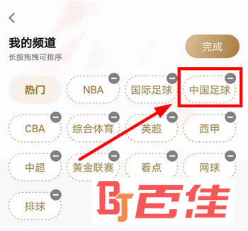 2、之后可以在“我的频道”功能中看到“中国足球”的选项,点击右边的编辑功能按钮,然后再删除“中国足球”即可屏蔽国内足球了。