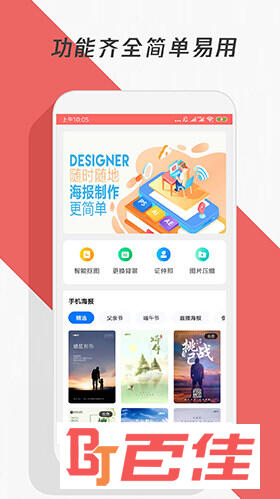 这是一款制作海报最新版v1.0.9的应用软件,里面的功能非常强大,不只能制作海报还能制作证件照和抠图,平常就可以在相应的节日做出相应的海报贴在家里,让氛围更好,有需要的赶快一起点击下载试试看吧。