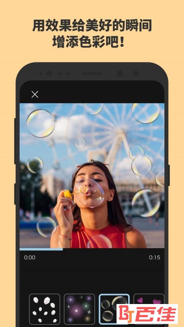 给照片加上相机动效以及花瓣、肥皂泡、心型等效果之后,短视频就做好啦。