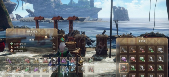 最后就是烟熏,把各种食物放进烟熏箱里食物的加成会比之前高10%左右,一般都是把发酵好的食物放进去,一个烟熏箱只能放1个食物,操作繁忙占地方,效率很慢,不想烟熏的朋友直接吃发酵食物也行。
