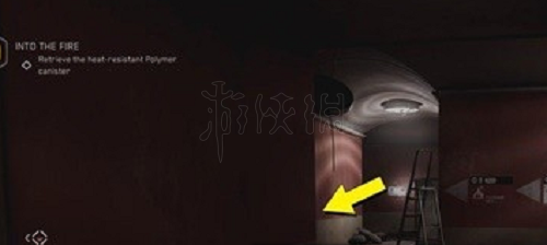避开失控的载货机,跳进聚合物,在门边的架子上拿到。