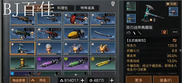 那么在副武器继承的时候,小编就要跟大家说一下规则了,首先攻击力只会继承上一个副武器的20%,而伤害呢只会继承上一个副武器的1/4,暴击率也只会继承负1/4,特技会继承百分之百,就拿锯齿刀这个副武器来说,如果我们将它培养到三星的时候,他的攻击力是105,暴击率是42.5%,伤害加成是19%。那么继承之后他的暴击率只有10.6%,而伤害加成只有4.8%了。