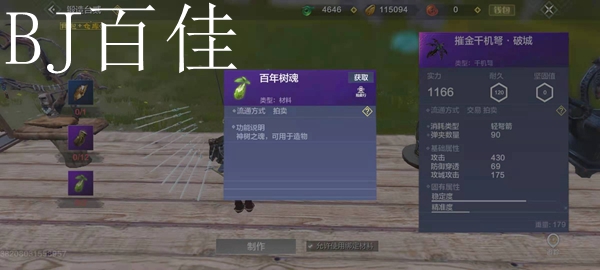 摧金千机弩-破城的合成需要的原料是稀有精石,钧木和百年树魂,其中前两项的获取和凡铁夹弩-破城是一样的,树魂这个是在采集百年神木的时候伴生的,出现的概率很低。大家除了多砍伐收集外,还可以在自己的农田里种植,这样获取百年树魂的几率要大一些。