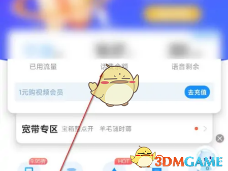 1、进入电信app,然后选择箭头指向位置,打开话费余额。