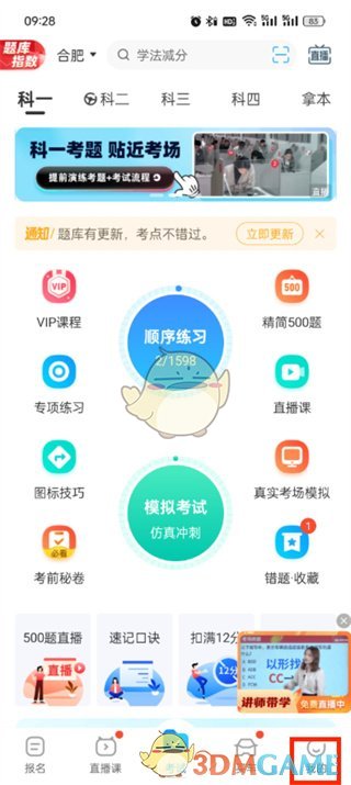 1、首先打开驾考宝典软件,进入到首页中可以切换到不同的页面,在这里点击右下角的【我的】;