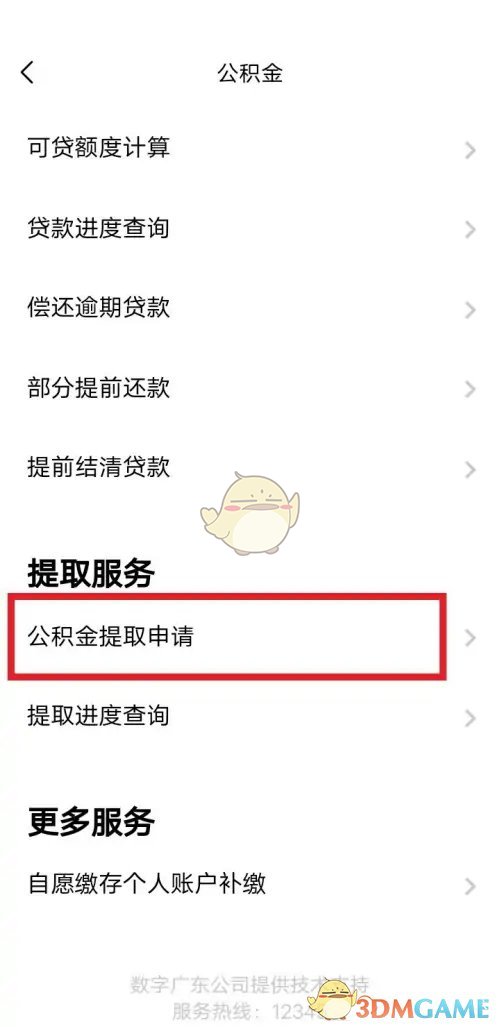 2、公积金页面,下拉提取服务,公积金提取申请。