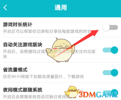 4、然后找到游戏时长统计,将其关闭即可。